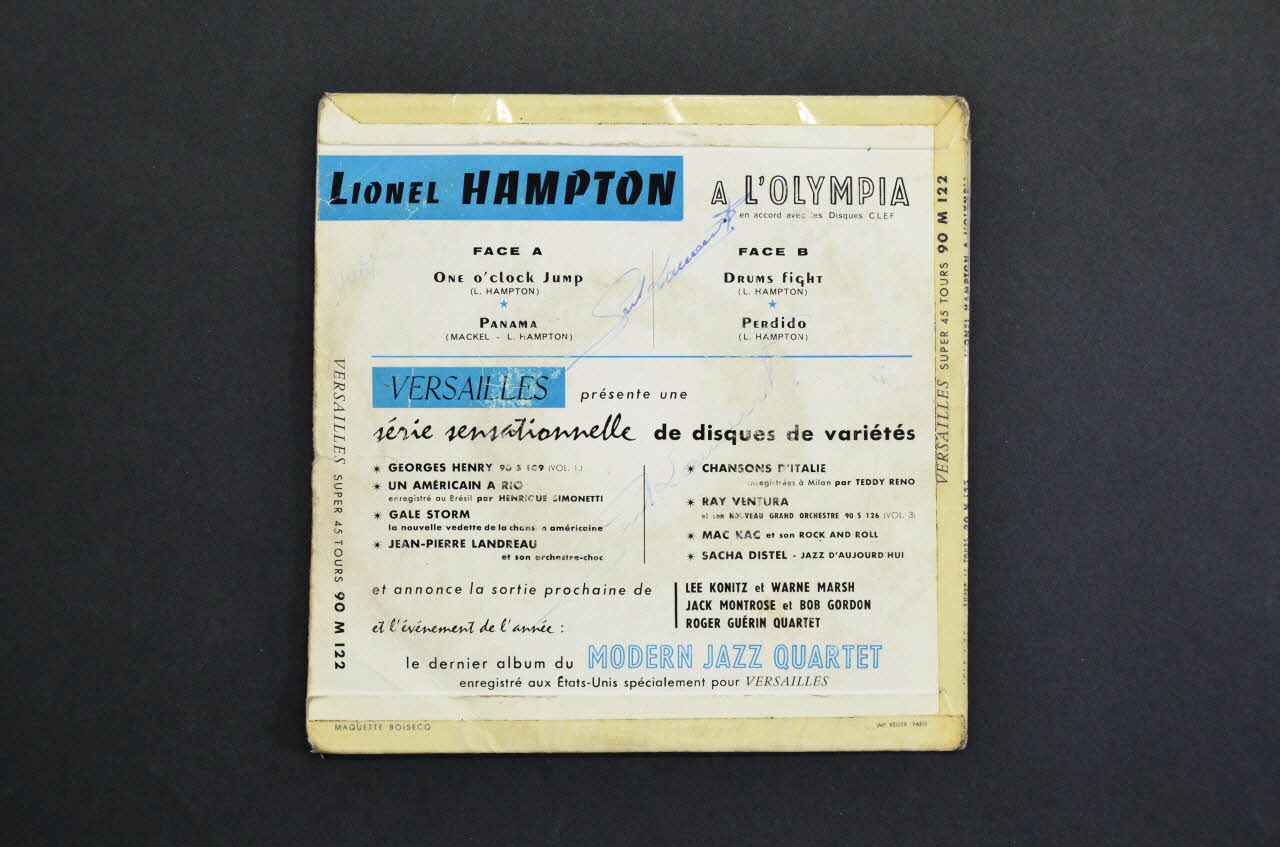 Le disque vinyle présente sur ses deux faces une étiquette circulaire, noire, en papier. Le logo de l'éditeur, le nom du chanteur et les titres des chansons y sont imprimés en doré.