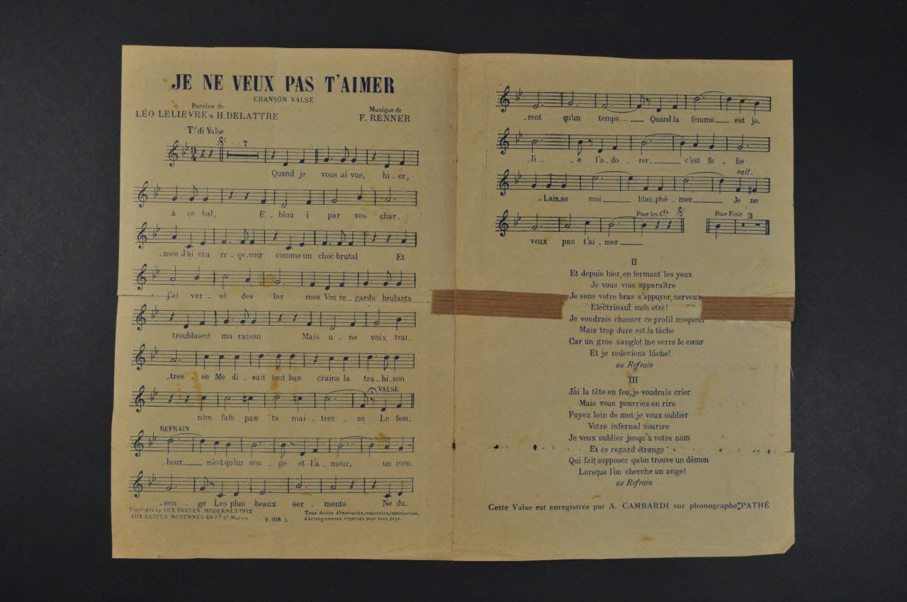 chanson, partition de musique, petit format, Je ne veux pas t'aimer
