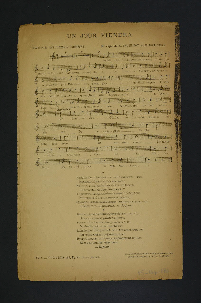 chanson, partition de musique, petit format, Un jour viendra