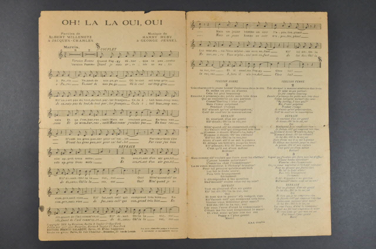 chanson, partition de musique, petit format, Oo-la-la ! Oui-oui !