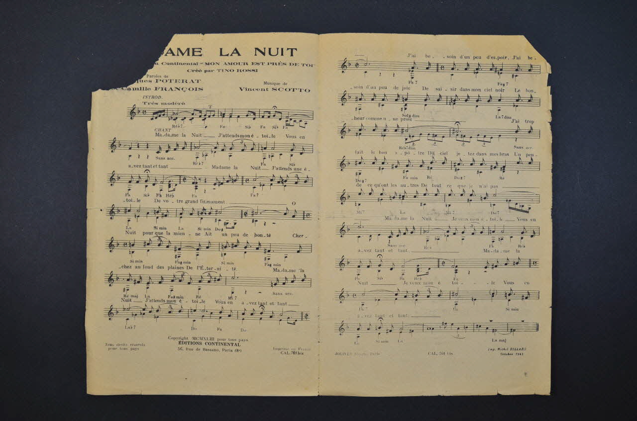 chanson, petit format, partition de musique, Madame la nuit, Mon amour est près de toi