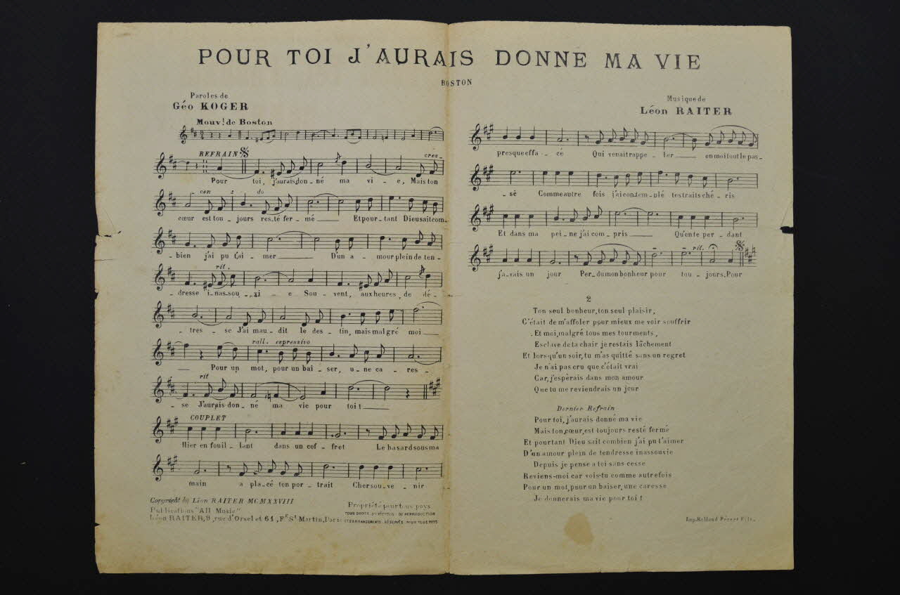 chanson, partition de musique, petit format, Pour toi, j'aurais donné ma vie