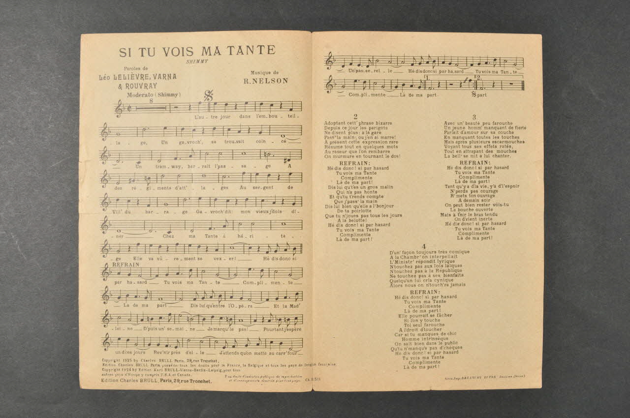 chanson, partition de musique, petit format, Si tu vois ma tante