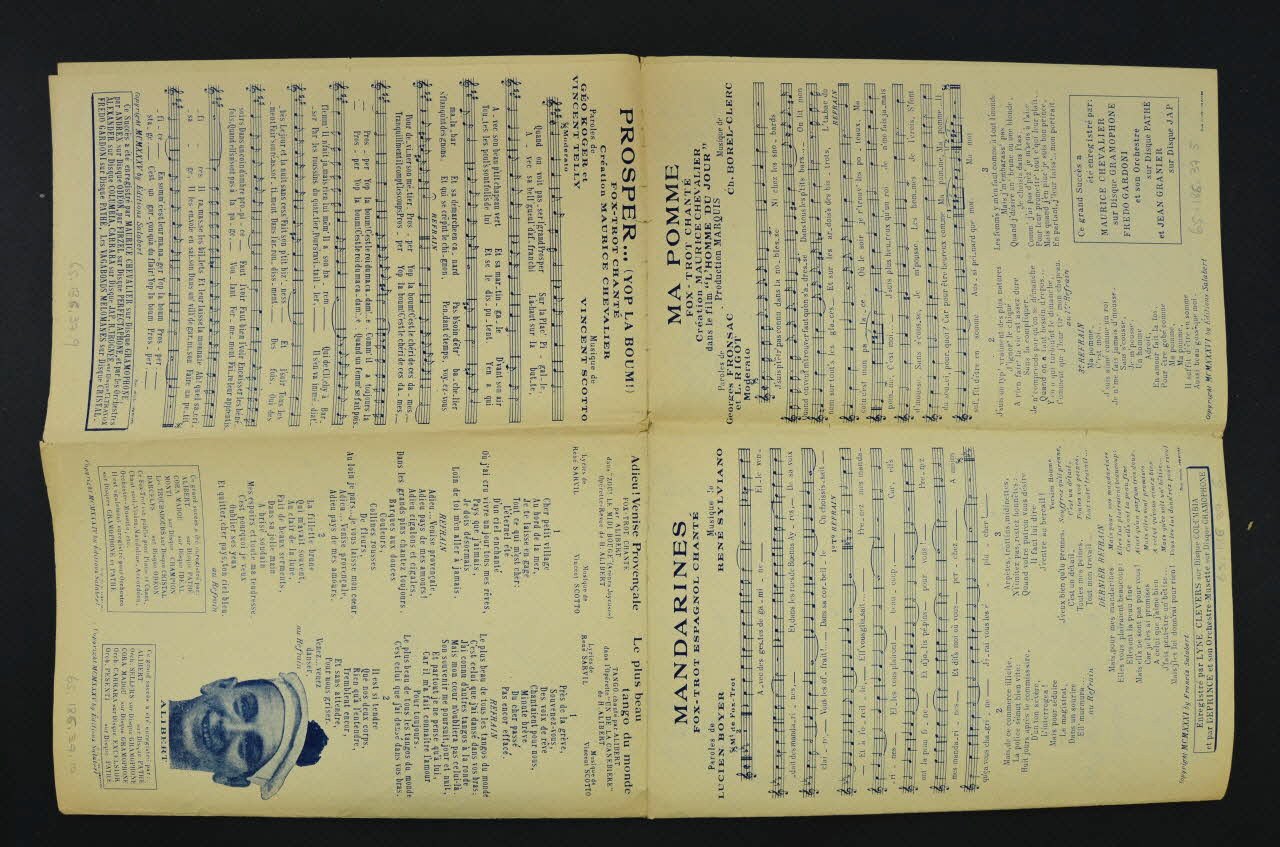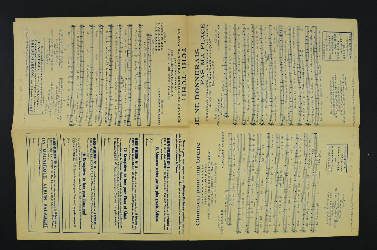 Ma Pomme : chanté dans le film L'Homme du jour / Tchi-tchi! : Java mexicaine chantée dans le film Mannella (?) / Mandarines : fox-trot espagnol / Tant qu'il y aura des étoiles : chanté dans le film Au Son des guitares / C'est un mauvais garçon : chanté dans le film Un Mauvais Garçon / Bella Raggazina : chanté dans le film Au Son des guitares / Chanson pour ma brune : chanté dans le film Au son des guitares / Recueil dédié aux visiteurs de l'exposition, chansons en vogue de 1937 / Marinella : chanté dans le film Marinella / Je ne donnerais pas ma place : Fox trot chanté dans le film Un Mauvais Garçon
