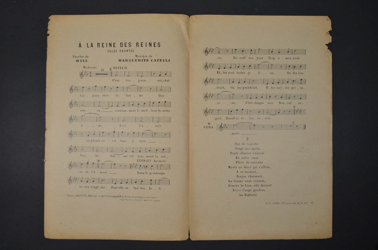 chanson, partition de musique, petit format, A la reine des reines