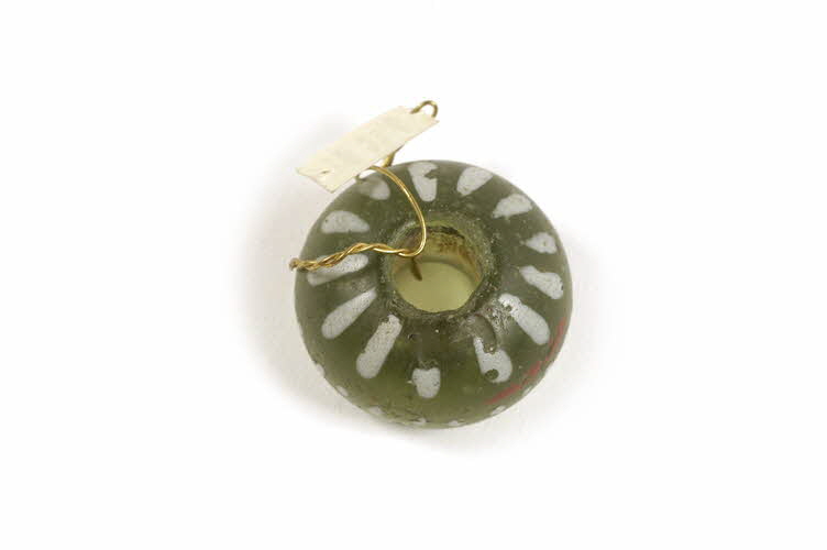 peson circulaire en verre translucide avec décor de points et traits blancs et rougesMatériaux et techniques