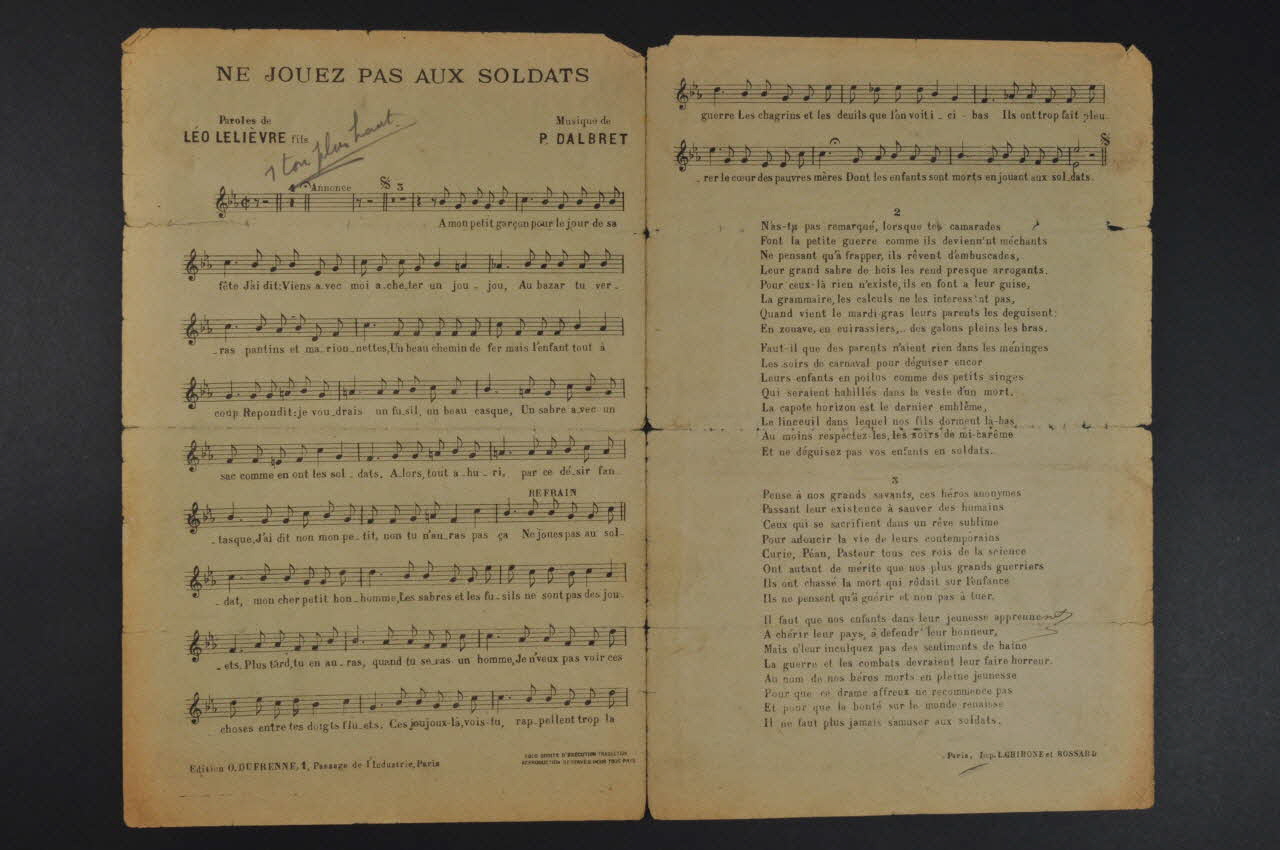 chanson, petit format, partition de musique, Ne jouez pas aux soldats