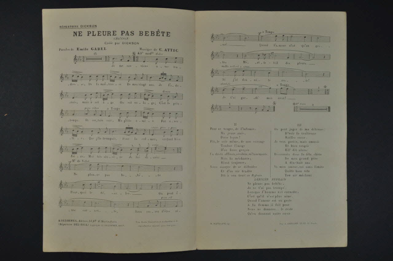 chanson, partition de musique, petit format, Ne pleure pas Bébête