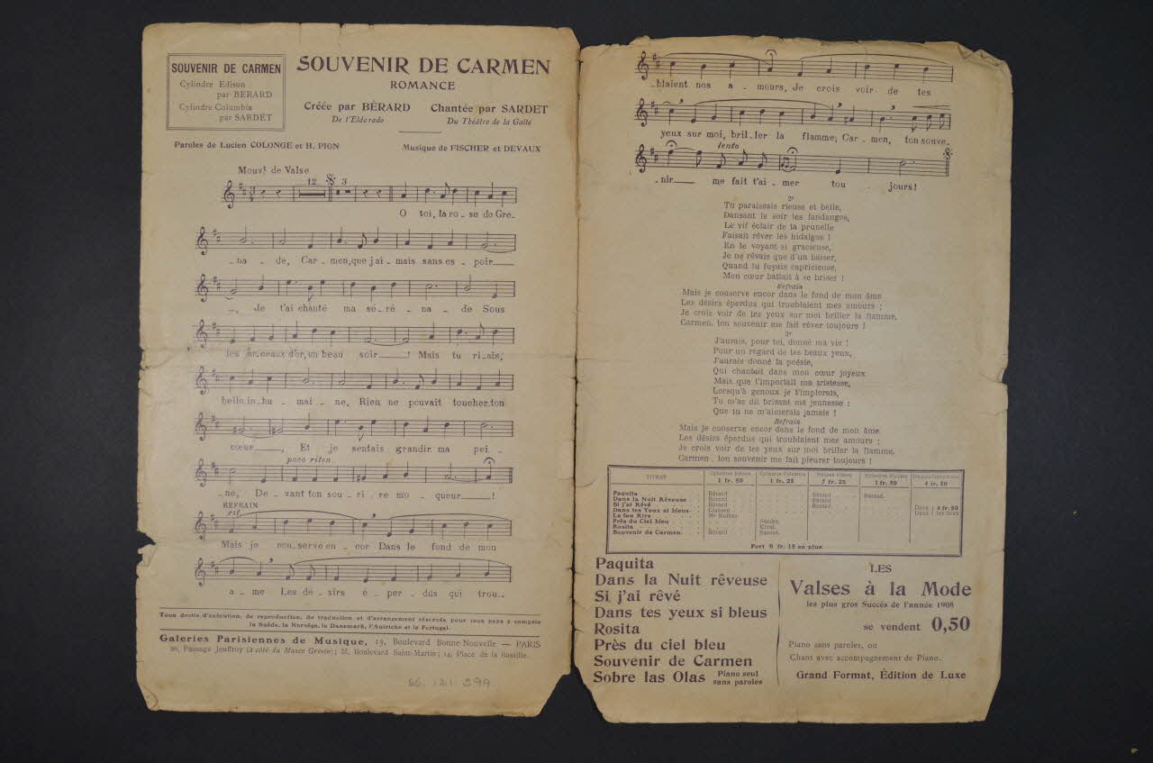 chanson, partition de musique, petit format, Souvenir de Carmen