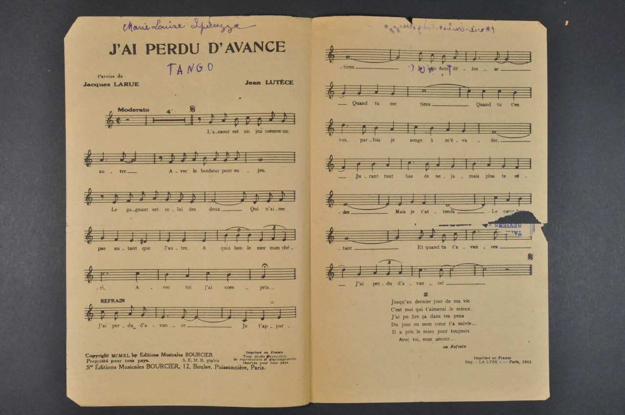 chanson, partition de musique, petit format, J'ai perdu d'avance