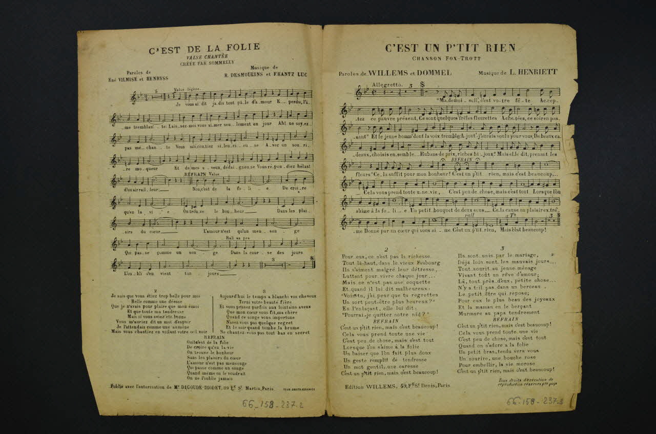 chanson, petit format, partition de musique, C'est un petit rien, Désir d'amour, C'est de la folie