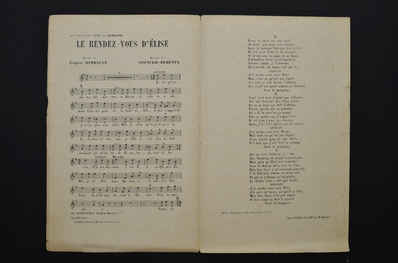 chanson, partition de musique, petit format, Le rendez-vous d'Elise