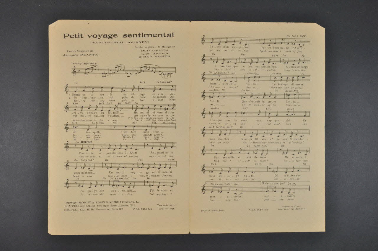 chanson, petit format, partition de musique, Petit voyage sentimental (sentimental journey)