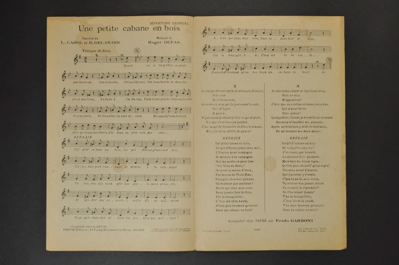 De : Lieu : Paris, Île-de-France, FranceDate : 1931Une petite cabane en bois / Une petite cabane en bois / Une petite cabane en bois / Tu ne dois pas m'aimer / 17 fg Montmartre