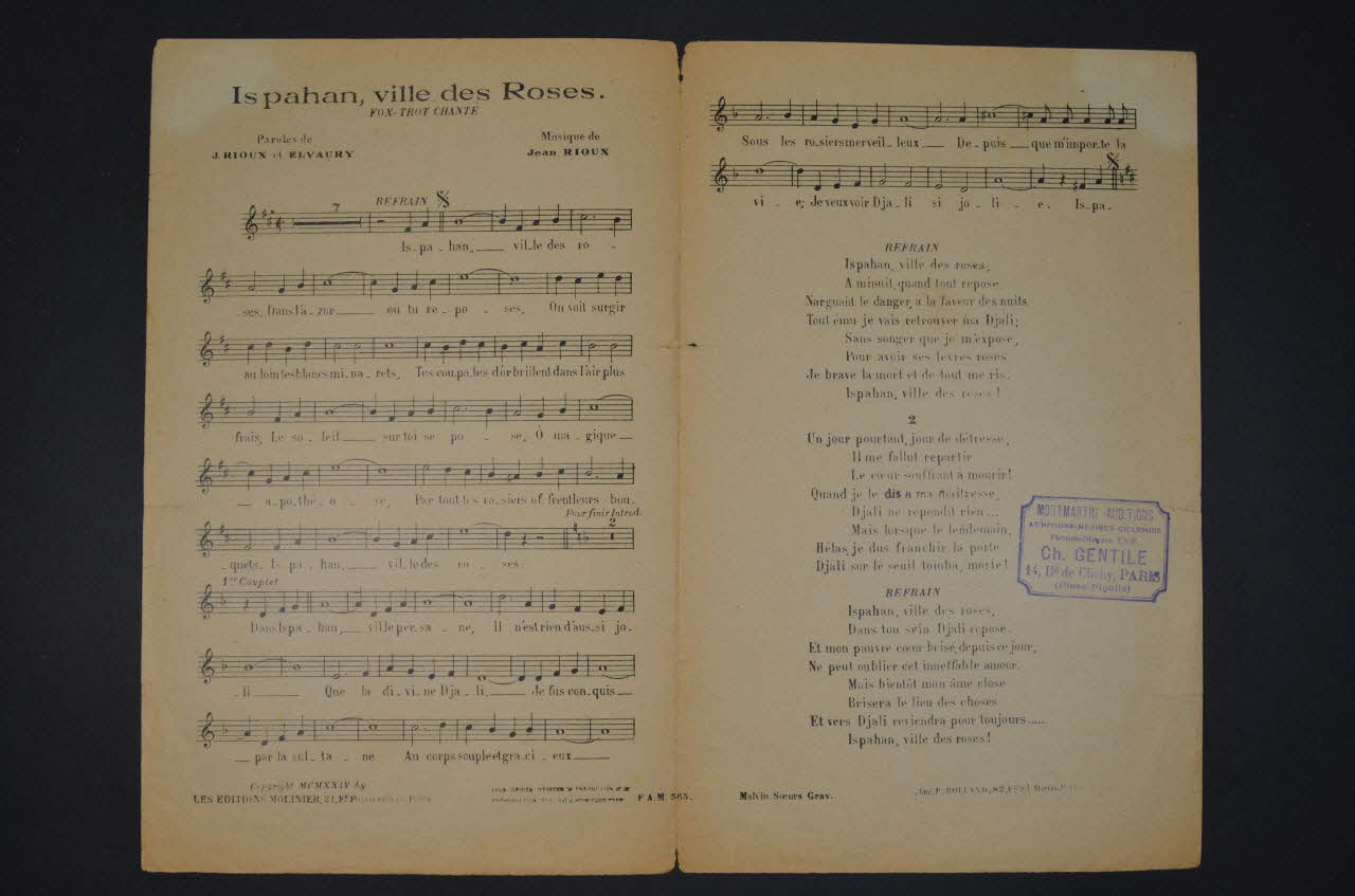 chanson, partition de musique, petit format, Ispahan, ville des roses