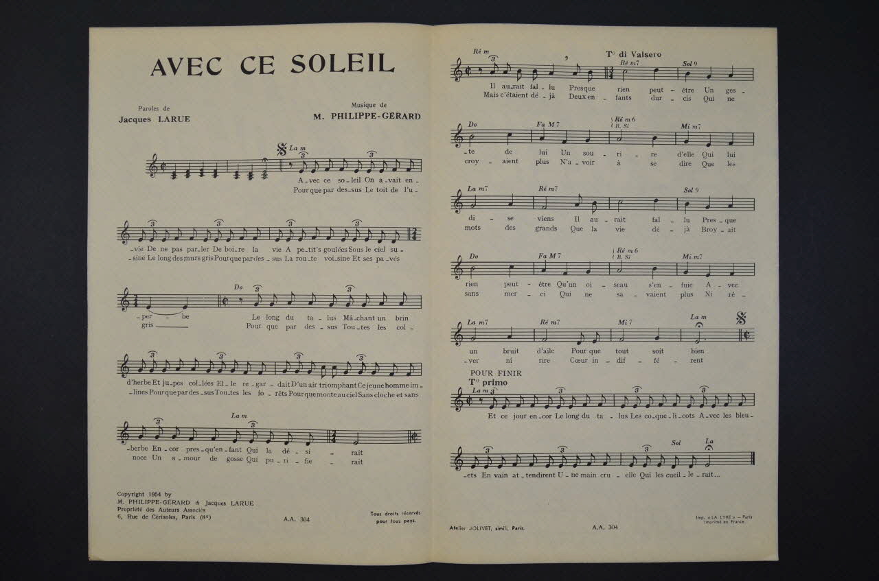chanson, partition de musique, petit format, Avec ce soleil