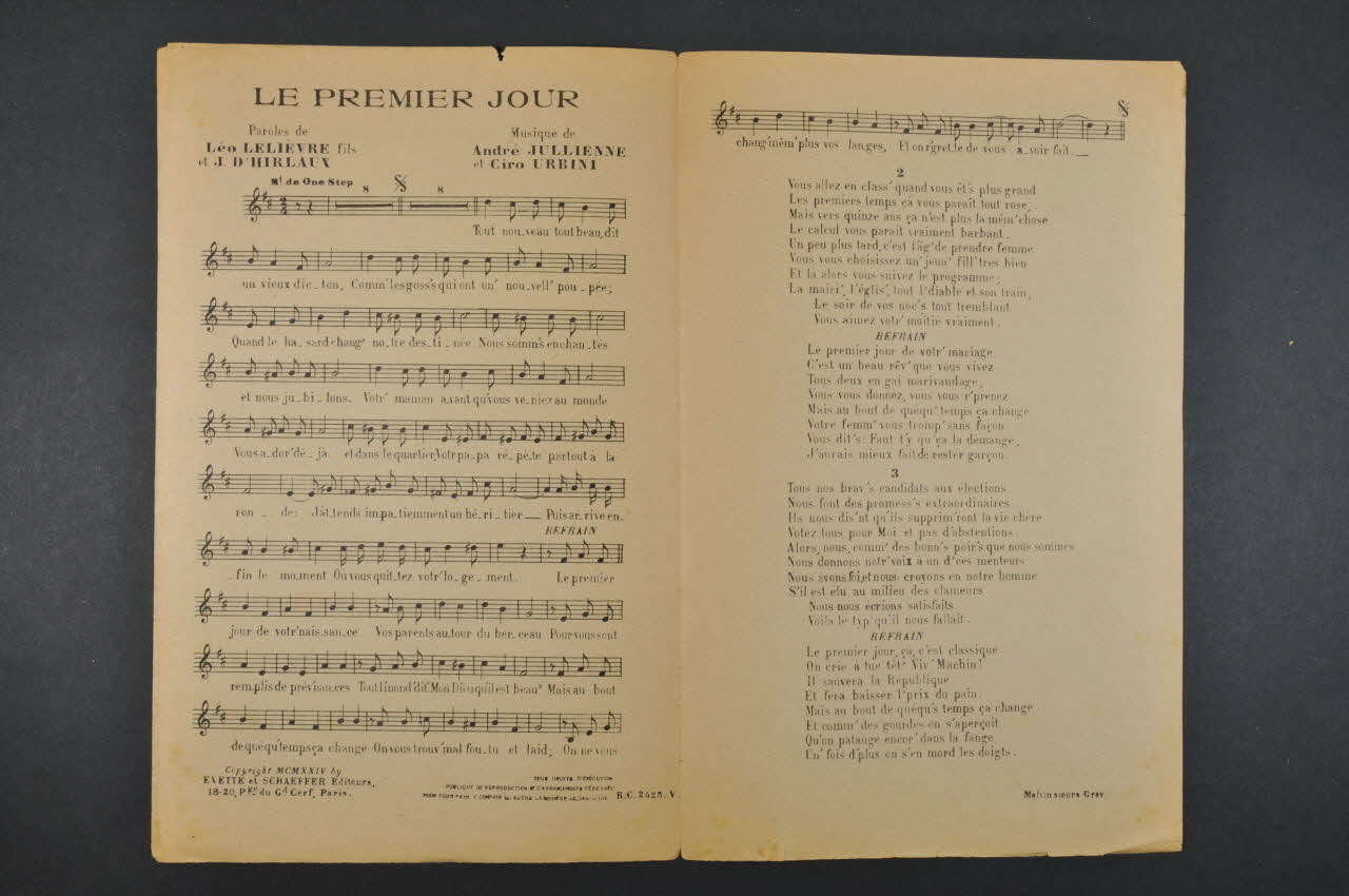 chanson, partition de musique, petit format, Le Premier Jour