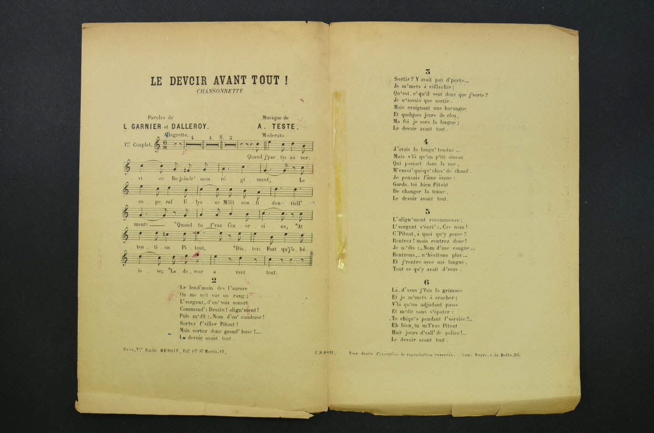 chanson, partition de musique, petit format, Le devoir avant tout !