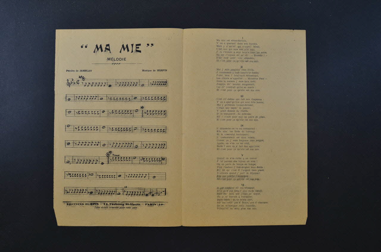 Au dos, liste d'autres partitions publiées par l'éditeur ; au-dessus, représentation du Sacré-Coeur, maisons et Moulin de Montmartre, au-dessous, une frise avec représentation de Montmartre.