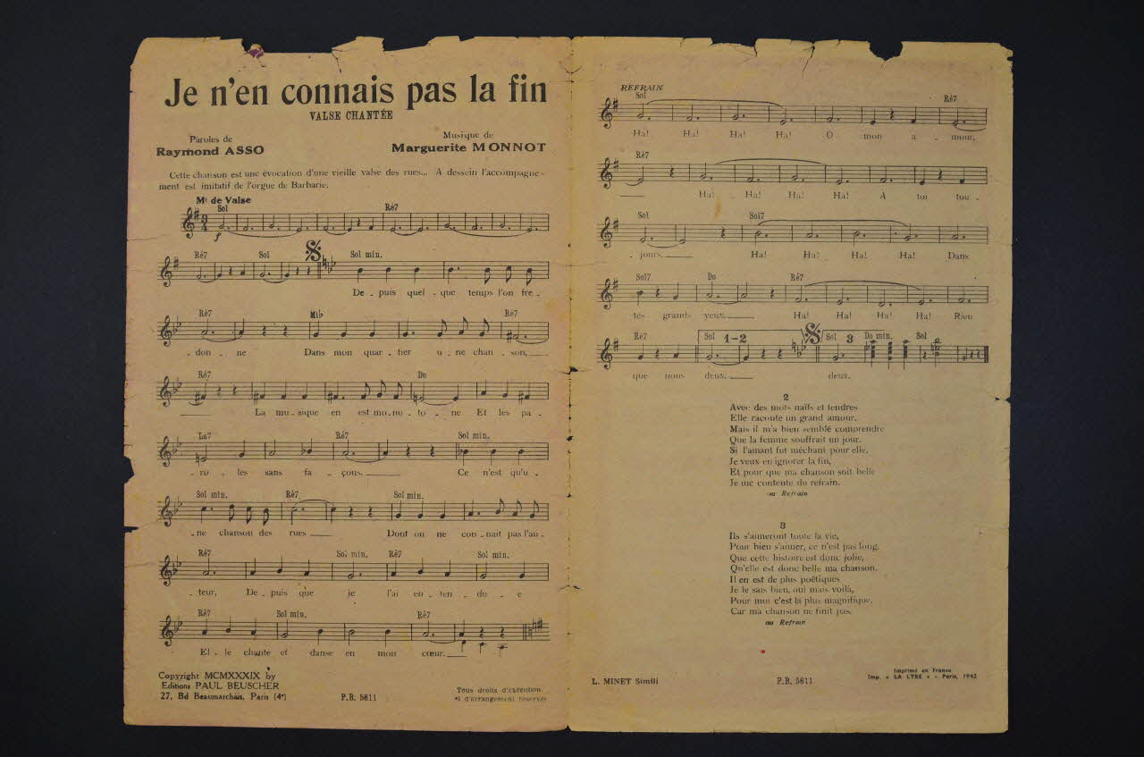 chanson, partition de musique, petit format, Je n'en connais pas la fin