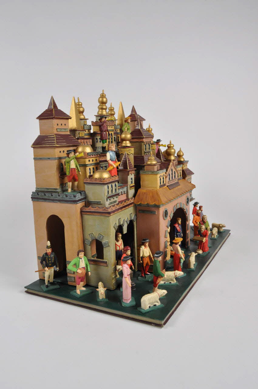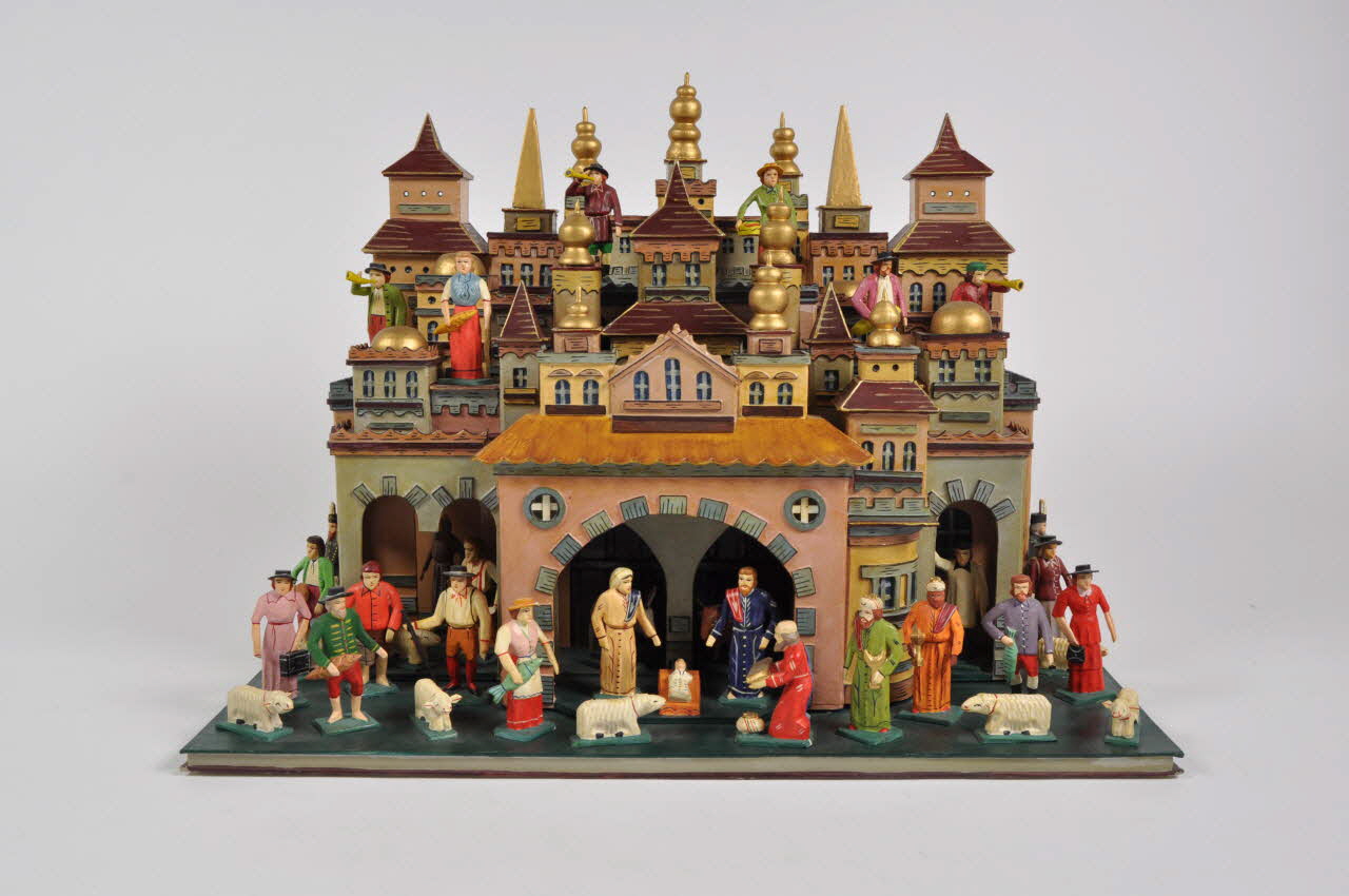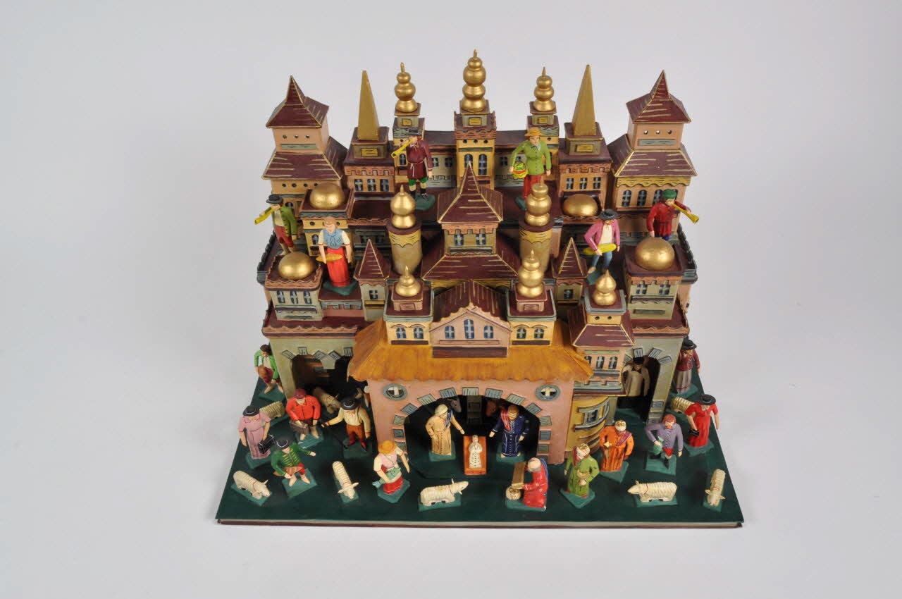 Lieu : République TchèqueDate : 2003Rare exemple de crèche tchèque à décor et personnages fixes réalisée en série pour la vente.