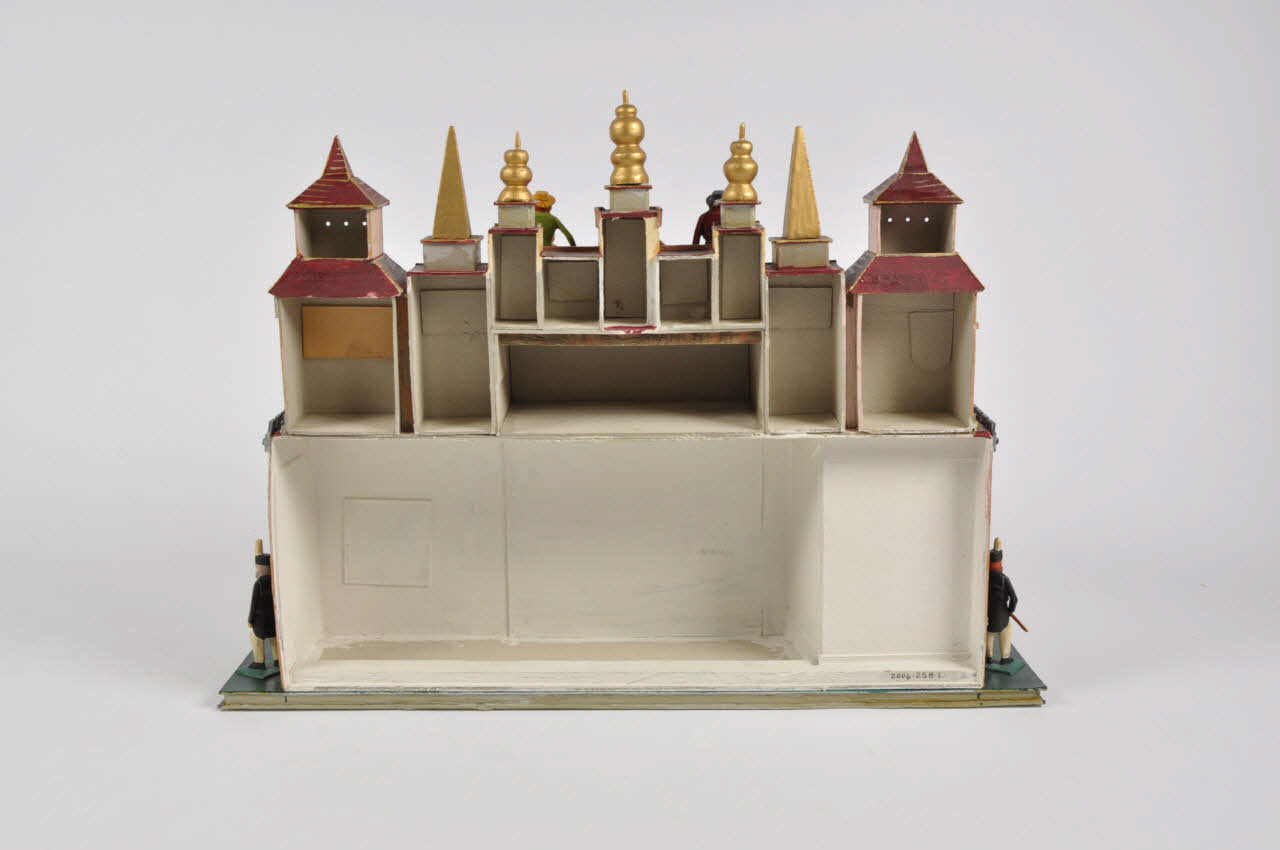 Le décor en bois et contreplaqué représente une ville dont on aperçoit surtout les toits. Le bâtiment au premier plan s'ouvre par une arche sous laquelle se tient la scène de la Nativité.