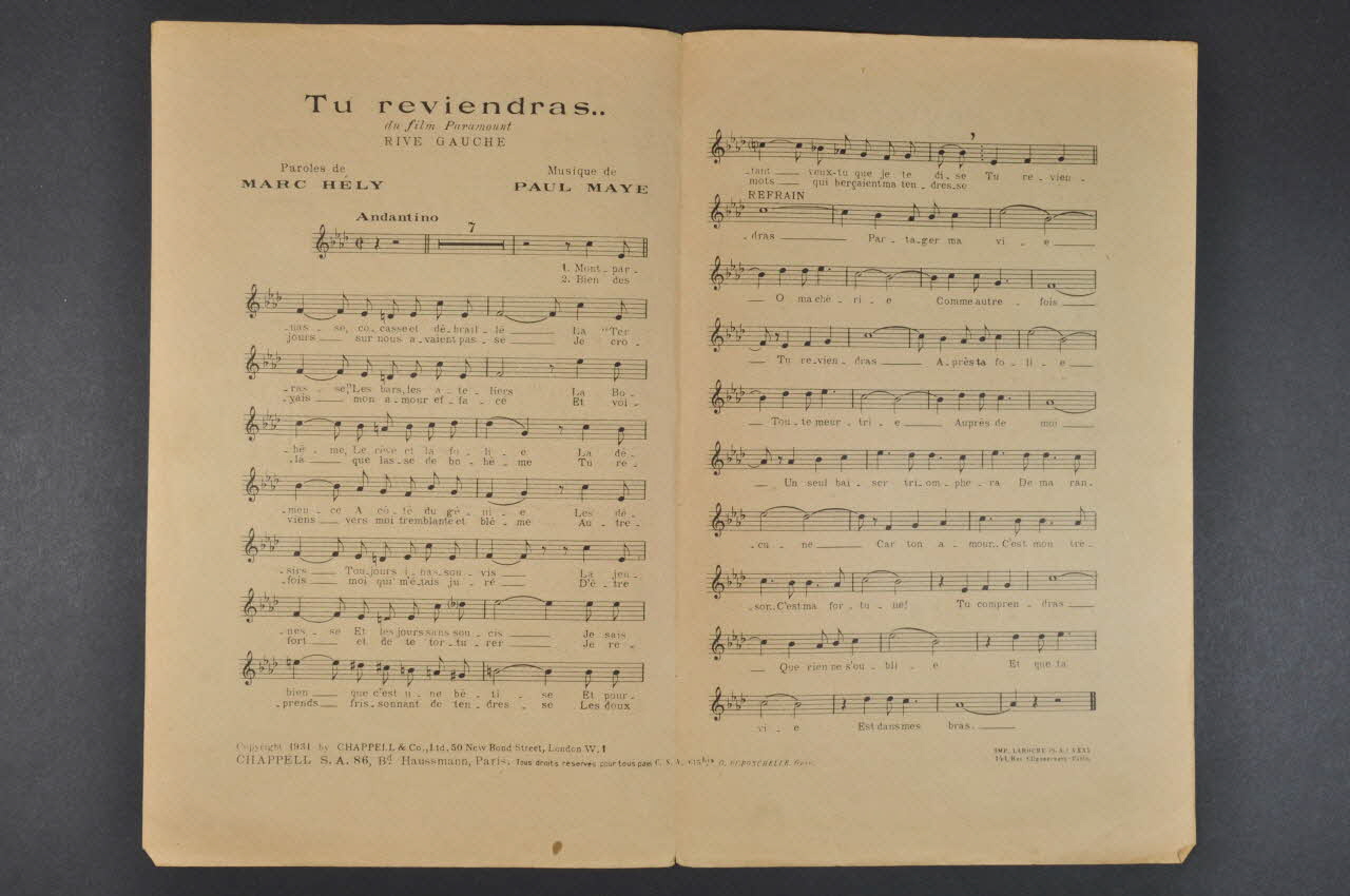 chanson, petit format, partition de musique, Tu reviendras, Rive gauche