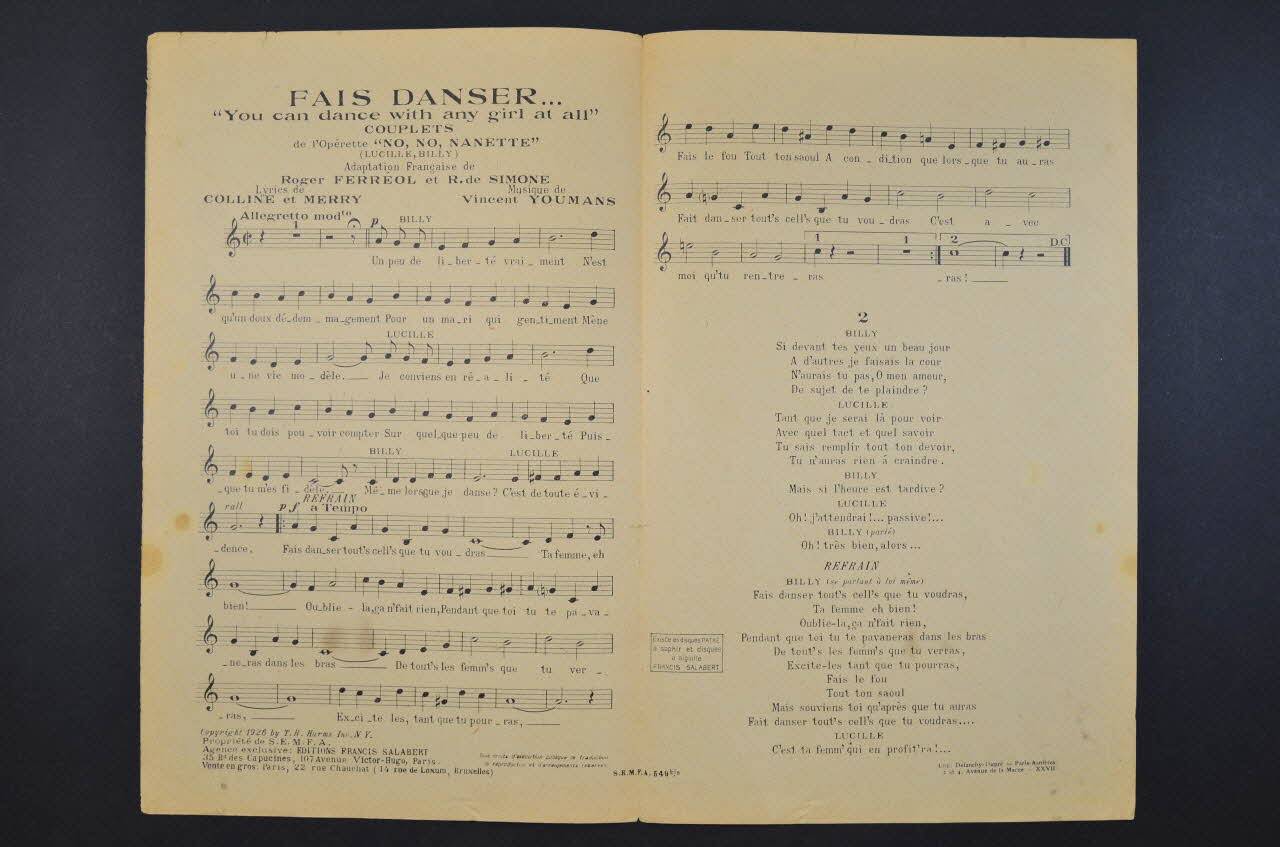 chanson, partition de musique, petit format, Fais danser, No, No, Nanette