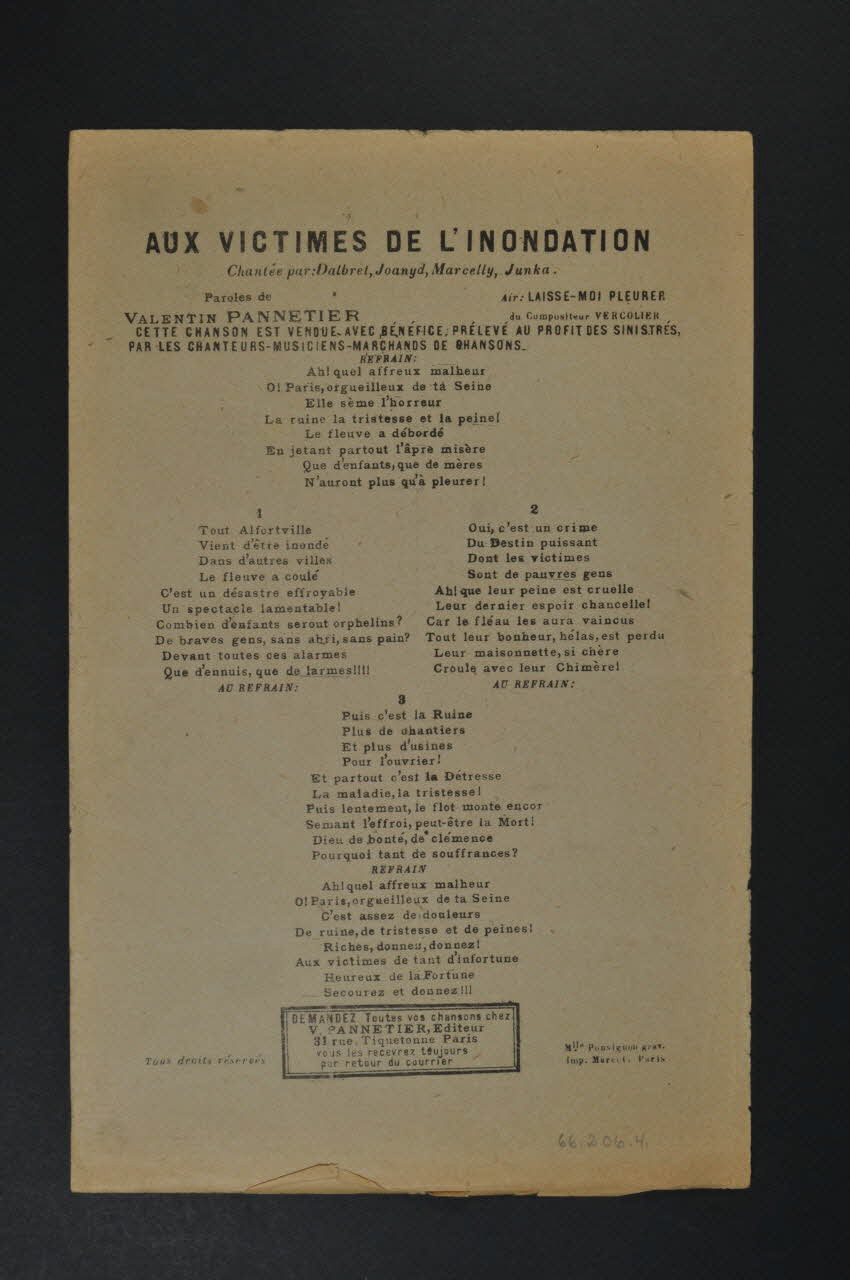 chanson, petit format, partition de musique, Aux victimes de l'inondation