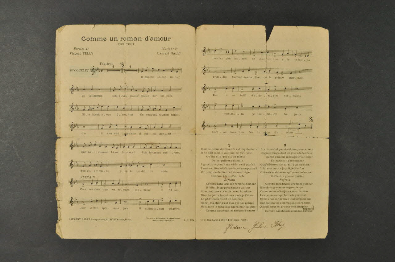chanson, petit format, partition de musique, Comme un roman d'amour