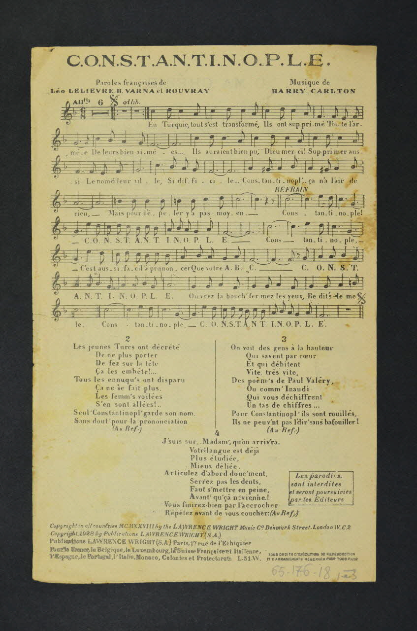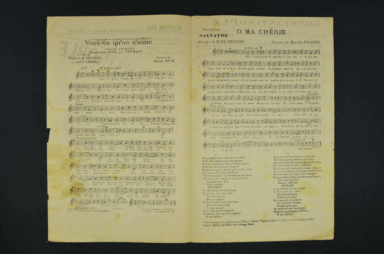 chanson, partition de musique, petit format, O ma chérie, Constantinople, Veux-tu qu'on s'aime
