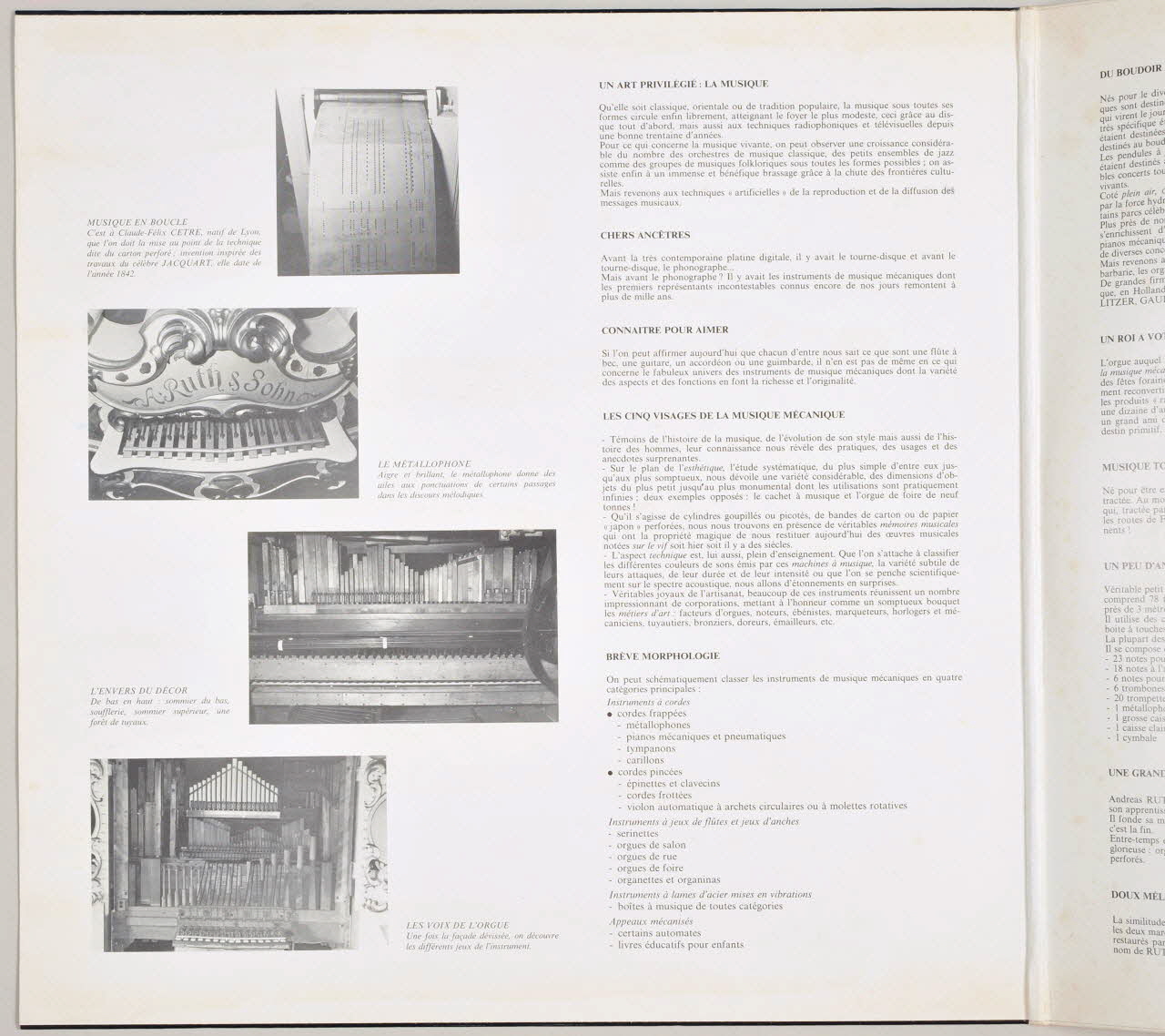 disque 33 tours, Marche Lorraine, Echo du Tyrol, La Marseillaise, Polka piquée, Salomé, España, Entrée des gladiateurs, Féérie de l'orgue mécanique, Cavalerie légère, La Dame blanche, Quand Madelon, En Bohême, Carmen, Le Freischutz, Marche de défilé, Polka de Monsieur le curé