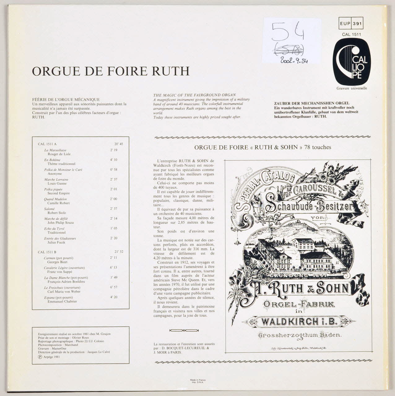 De : Date : 1981orgue de foire "Ruth and Sohn"