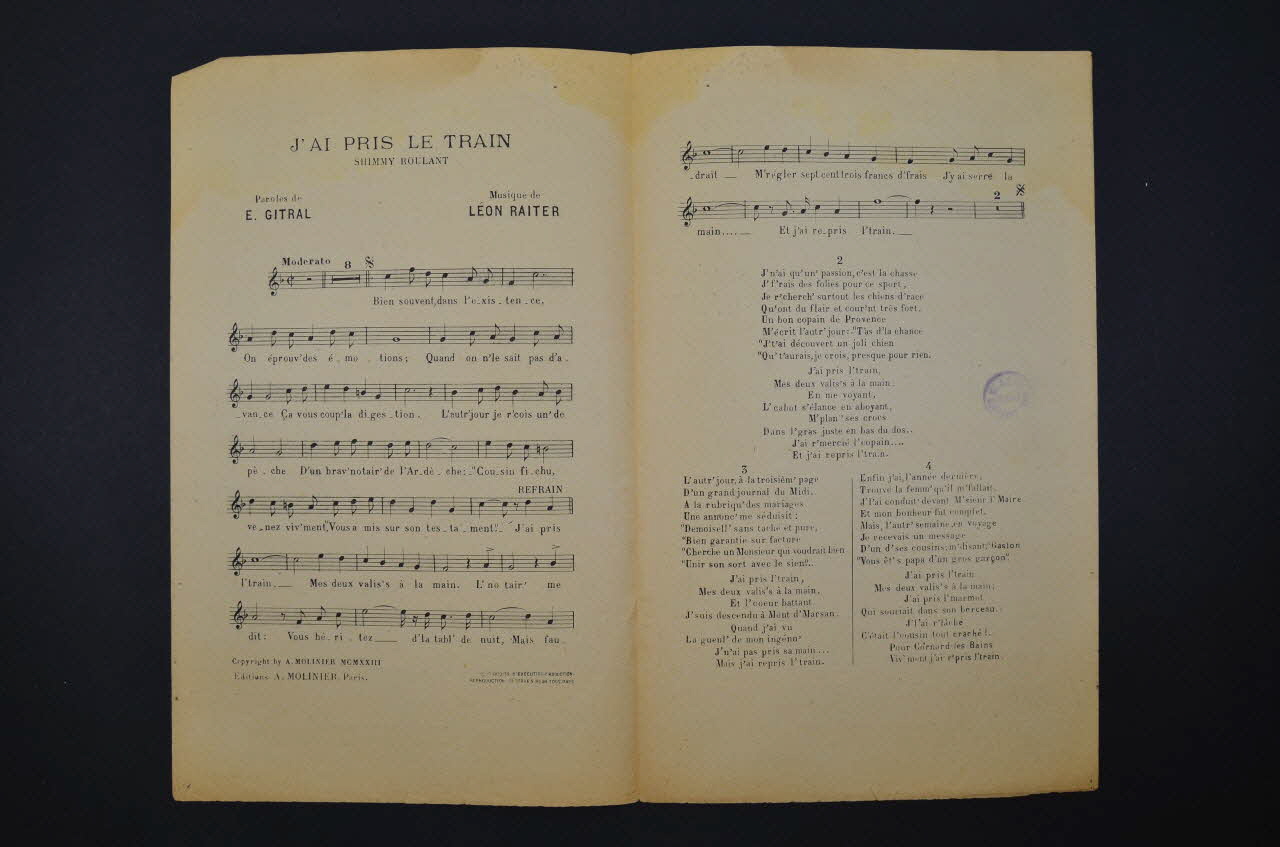 chanson, petit format, partition de musique, J'ai pris le train
