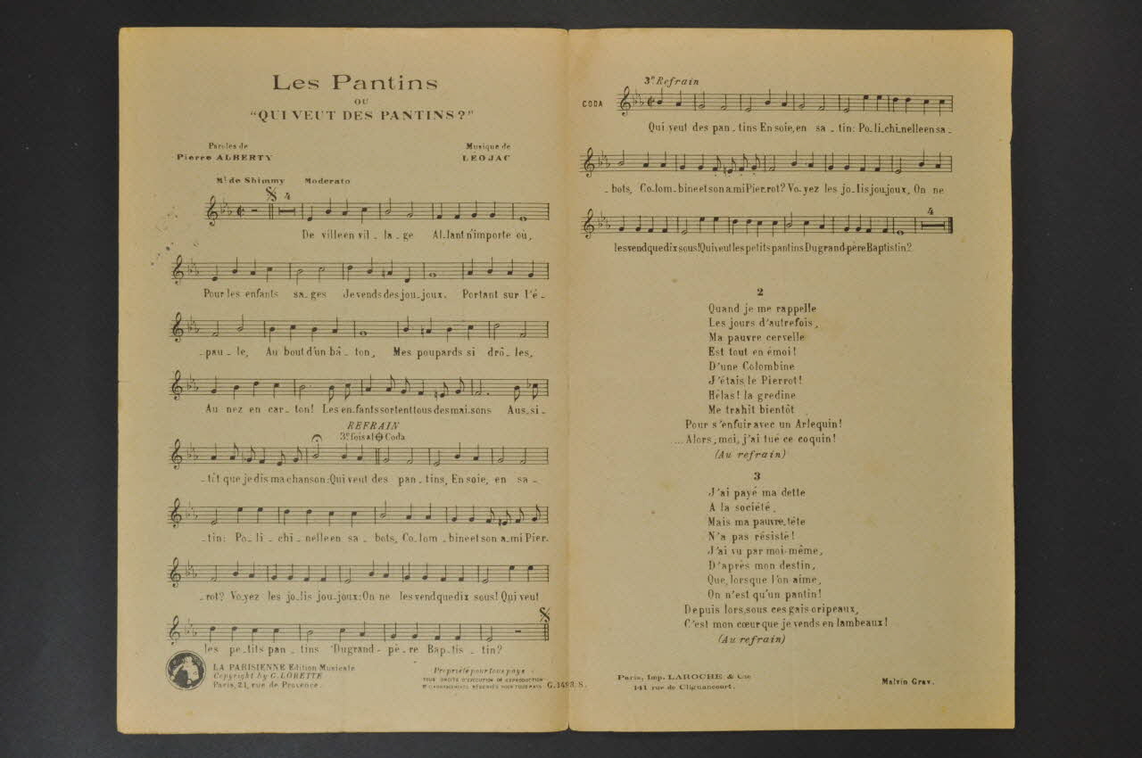 chanson, partition de musique, petit format, Les pantins
