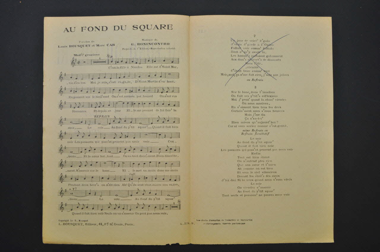 chanson, partition de musique, petit format, Au fond du square