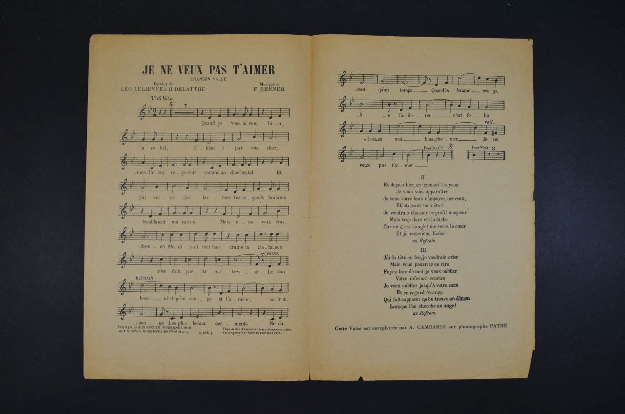 chanson, partition de musique, petit format, Je ne veux pas t'aimer