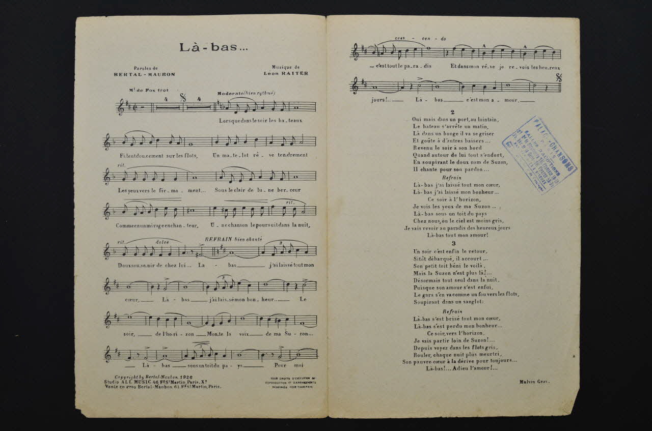 chanson, partition de musique, petit format, Là-bas