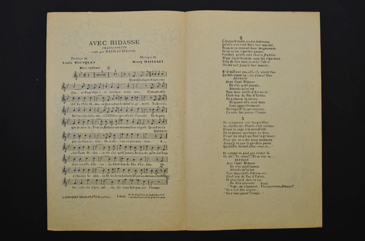 chanson, partition de musique, petit format, Avec bidasse
