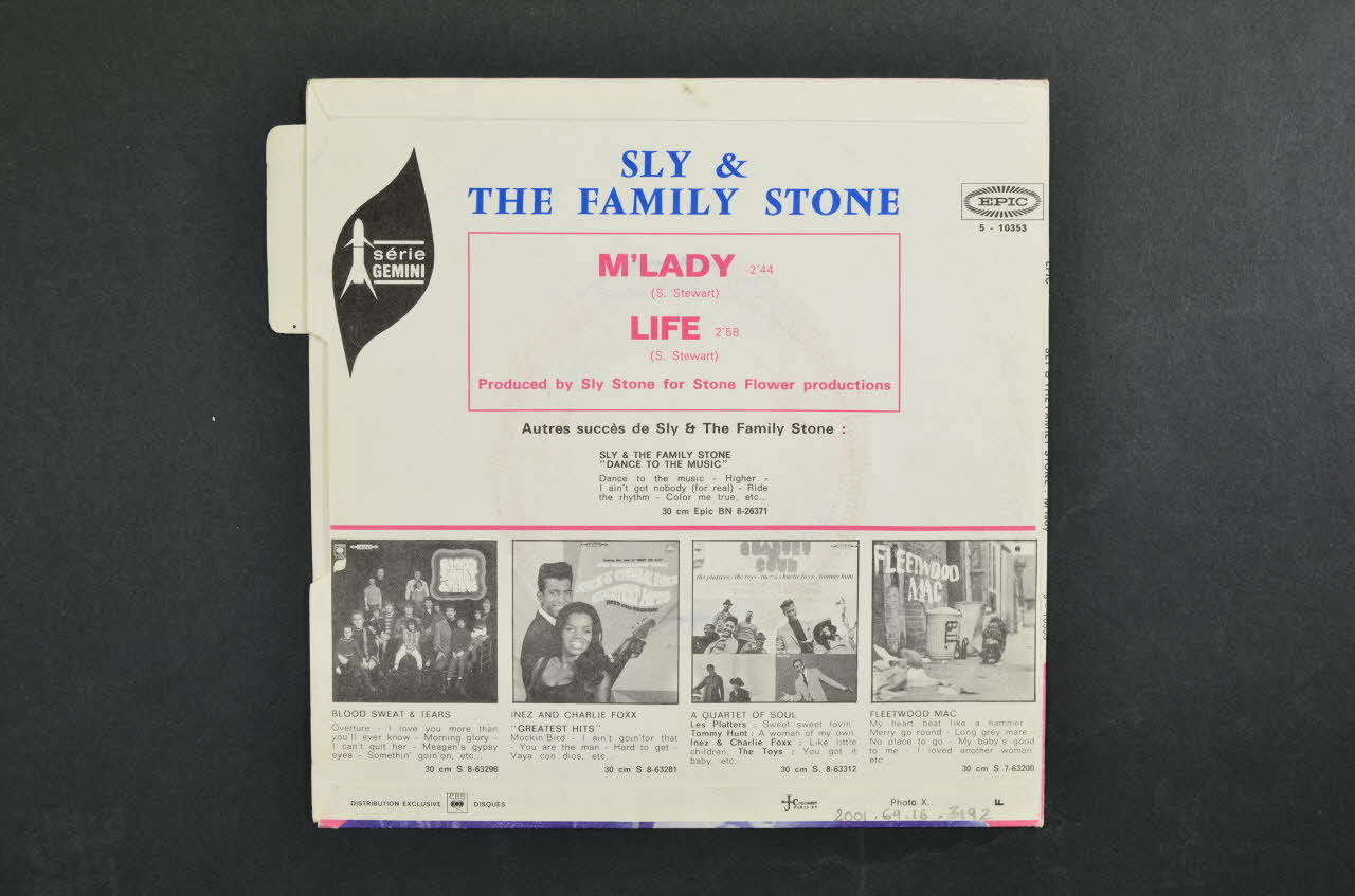 L'arrière comporte sur fond blanc le nom du groupe en bleu, les titres en rose foncé, puis quatre reproductions noir et blanc de pochettes de disques.