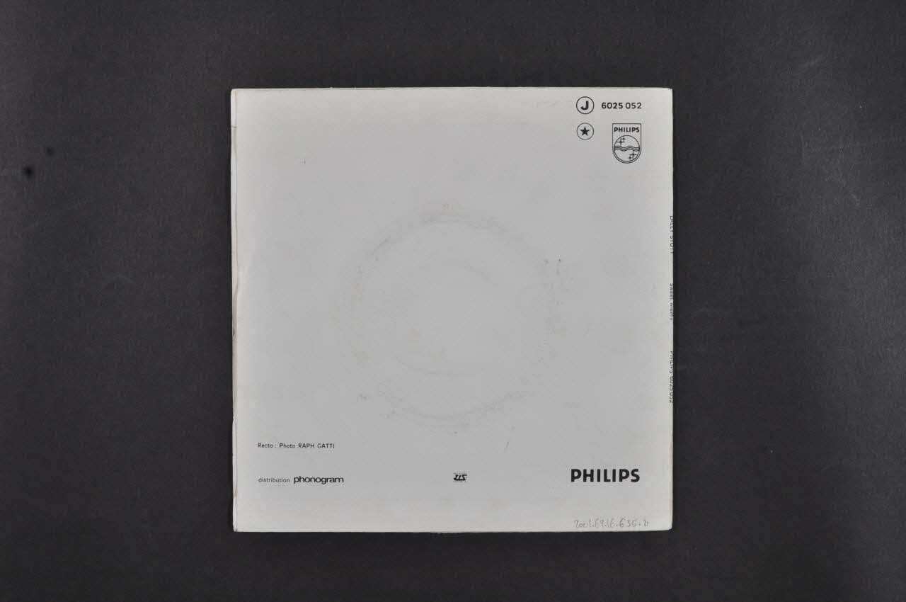 .1 Ce disque vinyle comporte une étiquette bleue collée au centre de ses deux faces. Des inscriptions telles que ; logo de la société de production, nom de l'artiste, titres et auteurs des morceaux y figurent.