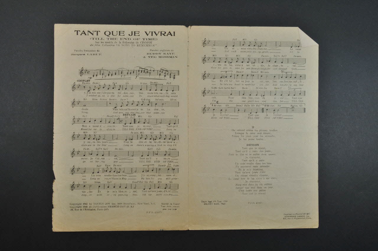chanson, partition de musique, petit format, Tant que je vivrai