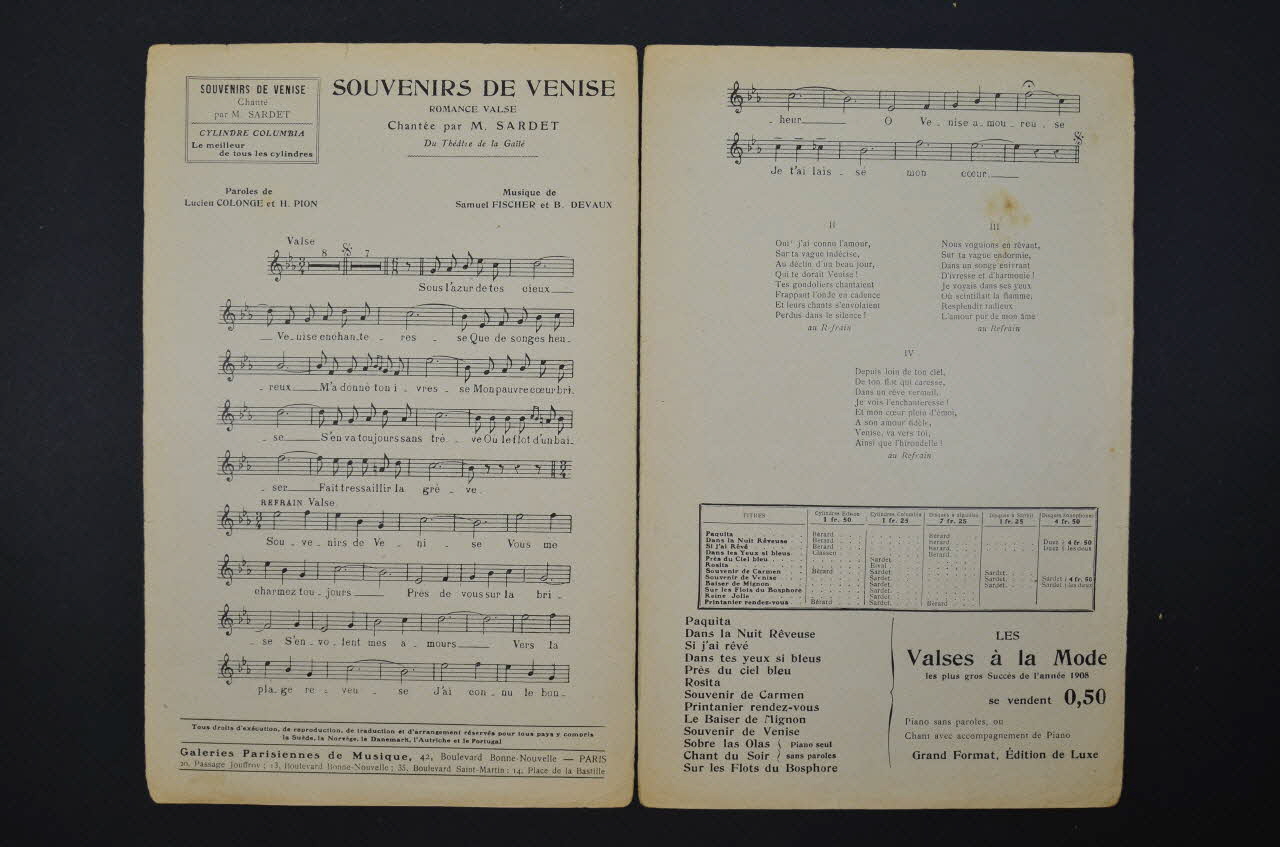 chanson, partition de musique, petit format, Souvenirs de Venise