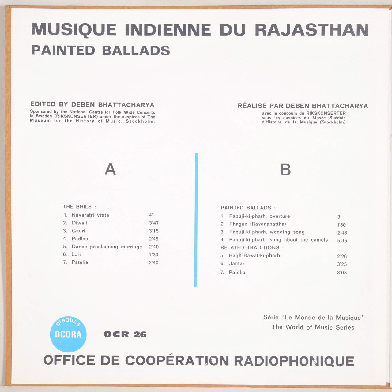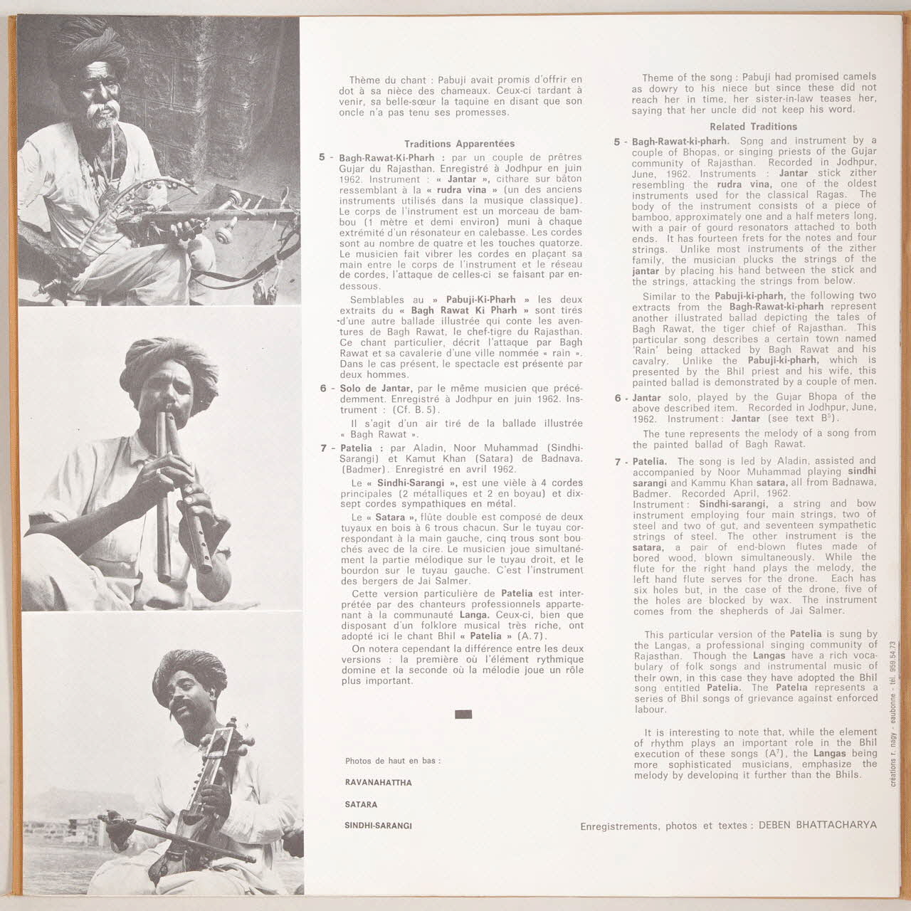 disque 33 tours, Musique indienne du Rajasthan