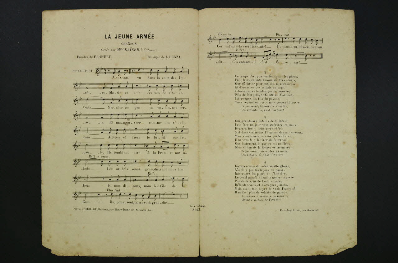 chanson, petit format, partition de musique, La jeune armée