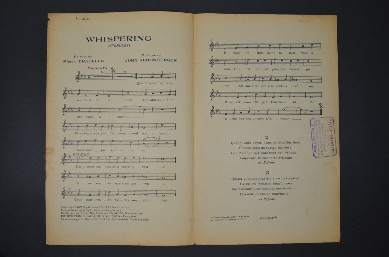 De : Lieu : Paris, Île-de-France, FranceDate : 1920paroles française