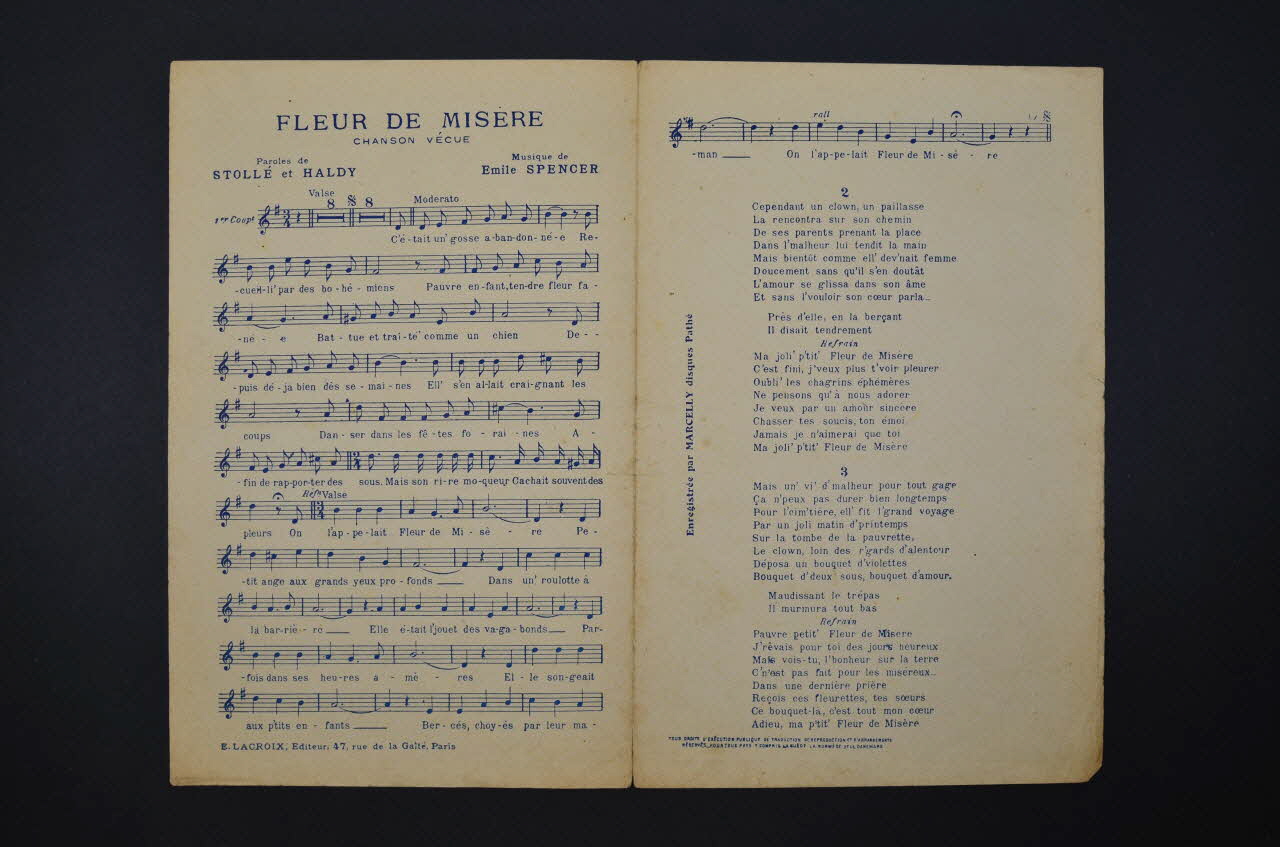 partition de musique, chanson, petit format, Fleur de misère