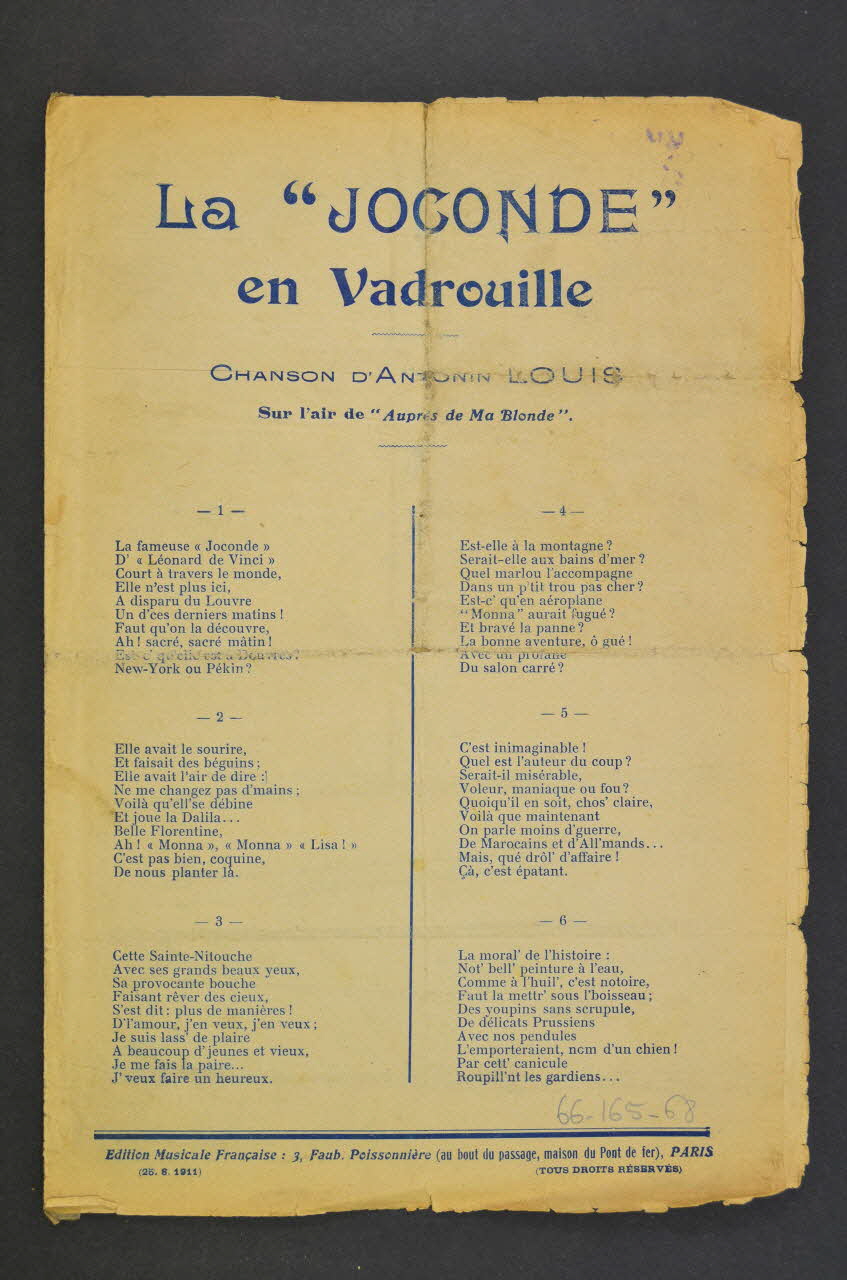 chanson, partition de musique, petit format, La "Joconde" en vadrouille