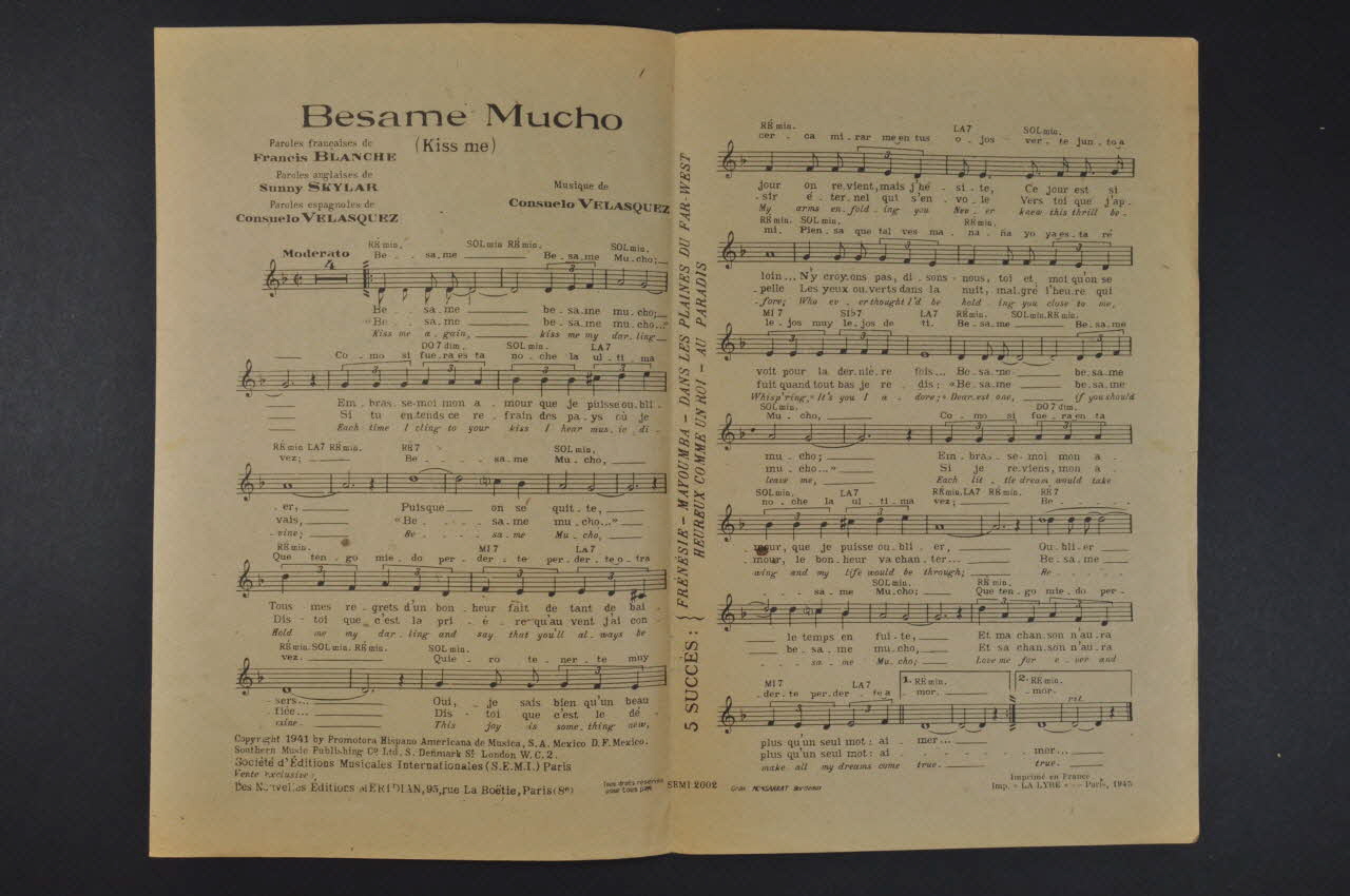 Des inscriptions renseignent le titre, les auteurs, les exécutants et l'éditeur. A l'intérieur, partition et paroles de la chanson. Au dos, liste d'autres partitions publiées par l'éditeur.Décor