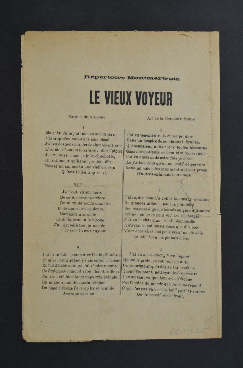 chanson, partition de musique, petit format, Le vieux voyeur